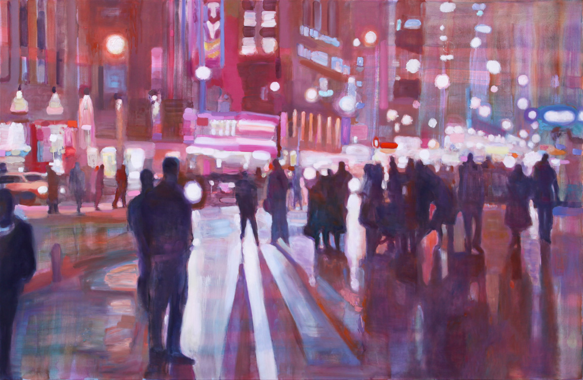 Es sind Stadtlandschaften, und sie entwickeln sofort einen Sog. Fast automatisch taucht man ein, wird Teil der Szenerie, wird einer von jenen, die dort in der nächtlichen Großstadt herumstehen, kommen oder gehen. Und man fühlt sich irgendwie wohl dabei.